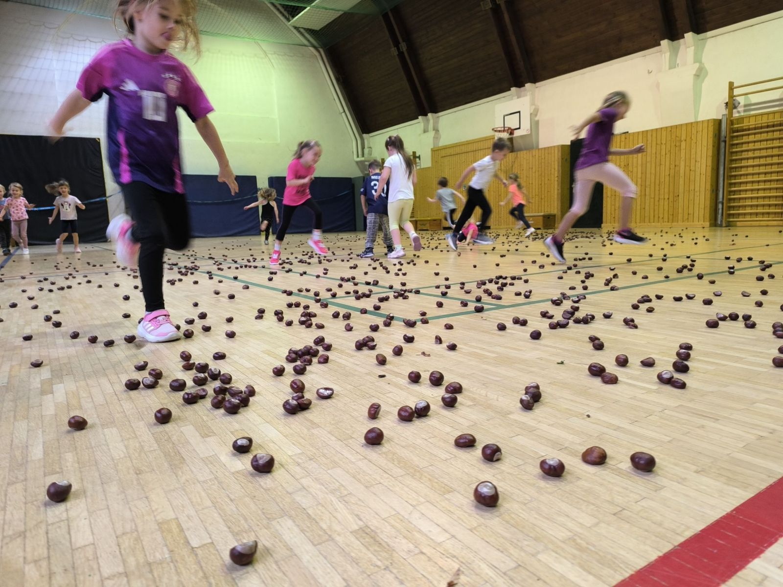 Kastanien in Bewegung: Eine ganze Stunde lang standen Kastanien im Mittelpunkt. Die Kinder liefen, balancierten und warfen mit ihnen – natürlich spielerisch und mit viel Geschicklichkeit.