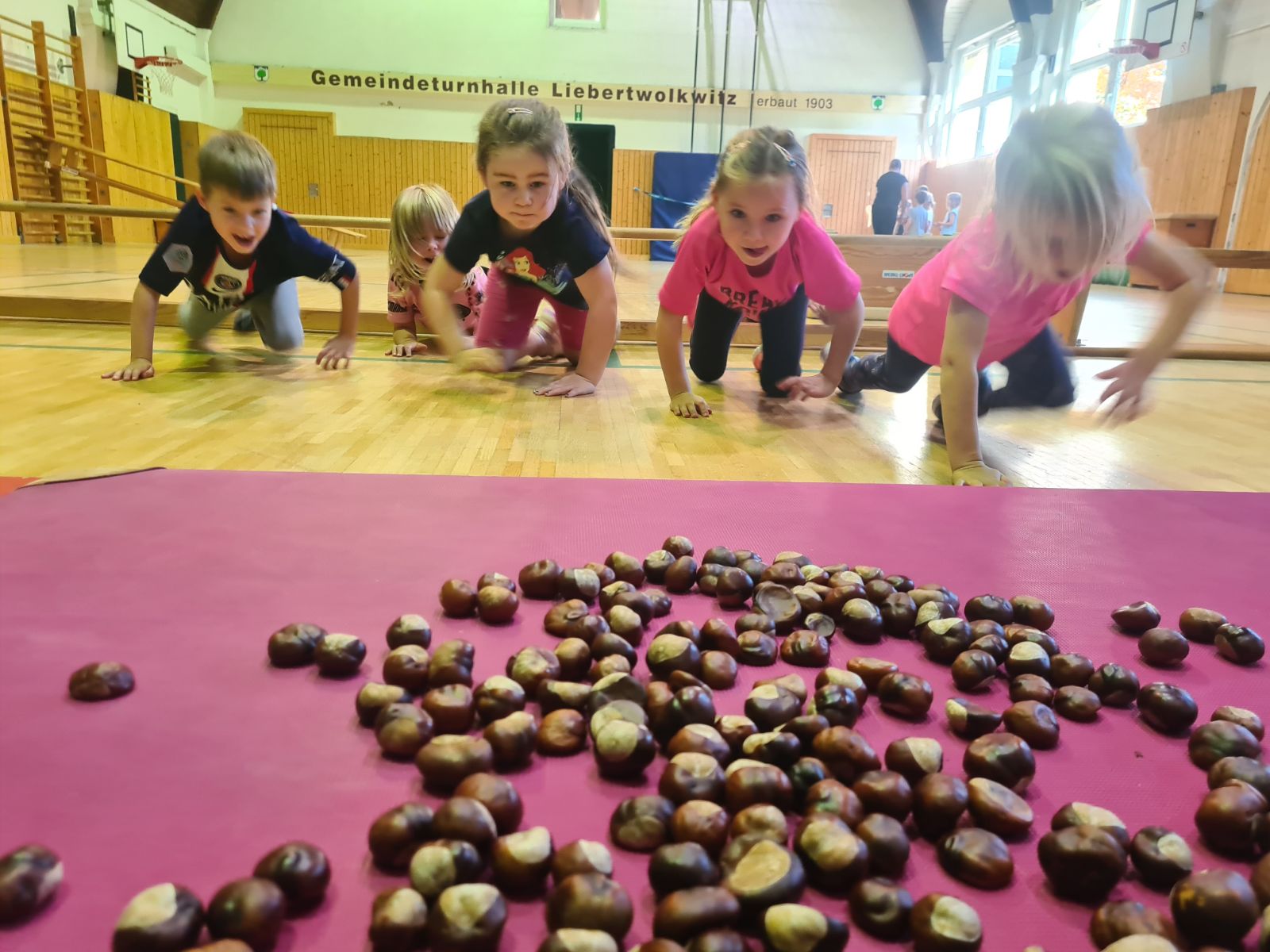 Kastanien in Bewegung: Eine ganze Stunde lang standen Kastanien im Mittelpunkt. Die Kinder liefen, balancierten und warfen mit ihnen – natürlich spielerisch und mit viel Geschicklichkeit.